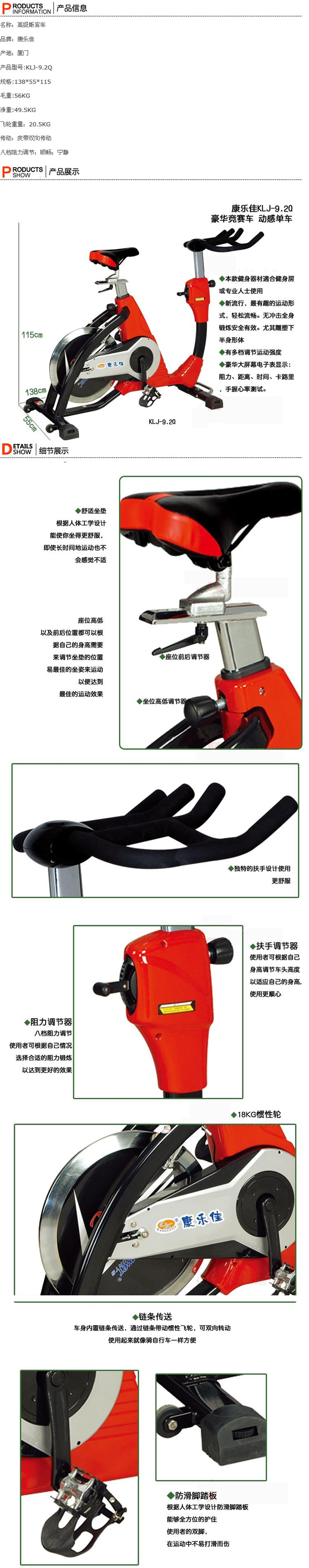 康樂佳KLJ-9.2Q商用豪華動感單車 競賽車